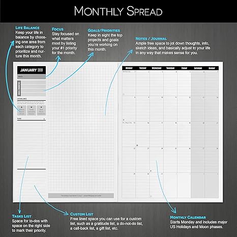 Monthly Planner 2018 Goal Agenda Calendar Journal Ultra Thin