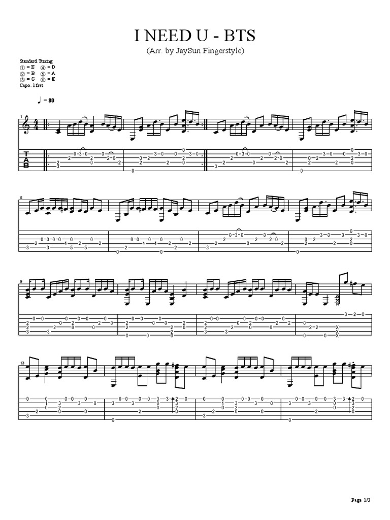 I Need You Bts Numbered Musical Notation Preview