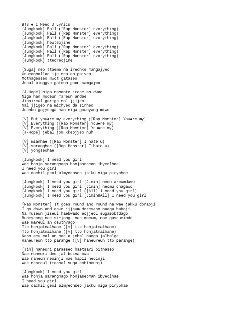B K Pop Lyrics N Song I Need You Bts Wattpad